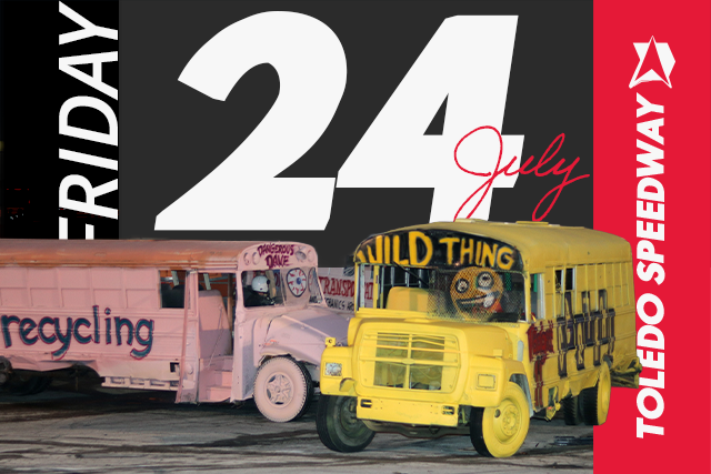 Spectators are in for a wild ride with the R&M Recycling School Bus Figure 8, featuring Late Model Sportsman, Figure 8, Factory Stock, and Boat Figure 8 races. Expect big crashes, big laughs, and unforgettable moments under the lights.